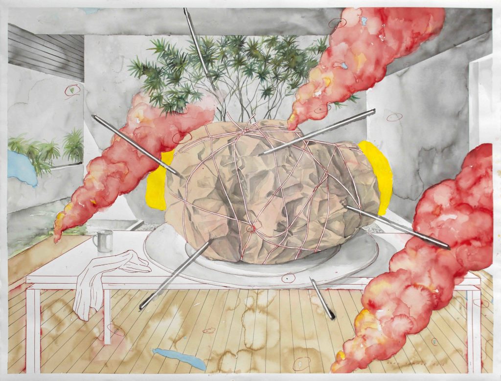 Previous Image Next Image Agus Suwage. Ego Worship #2. 2018. Watercolour, ink and tobacco juice on paper. 100 x 131 cmLR